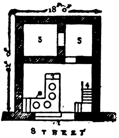 На следующей иллюстрации (с.680a) изображена такая же лавка с более просторными личными помещениями. Она имеет отдельный вход с улицы в частные покои, ведущий в очень маленький атрий, потолок которого поддерживают четыре колонны, две из которых утоплены в стене; в атрий открывается кухня, похожая на чулан, и маленькая столовая. Очень узкая лестница ведёт на второй этаж.