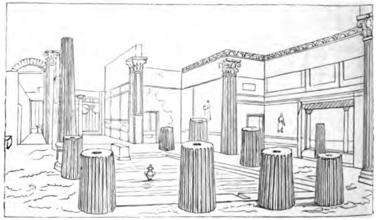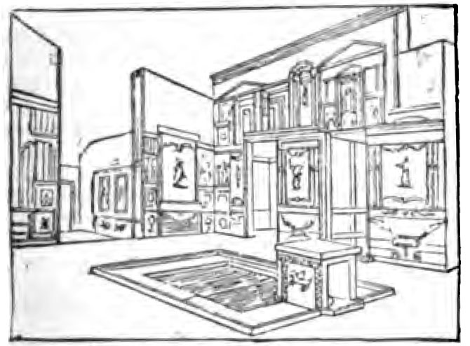 На следующей иллюстрации изображён атрий дома, который обычно называют «домом Цереры». В с.681 центре расположен имплювий, и, поскольку вокруг него нет колонн, этот атрий должен относиться к типу, который Витрувий именует «этрусским».