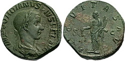 Сестерций, бронза Монетный двор: Рим, дата чеканки: 240 г. вес: 18.48 г; диаметр: 29 мм;